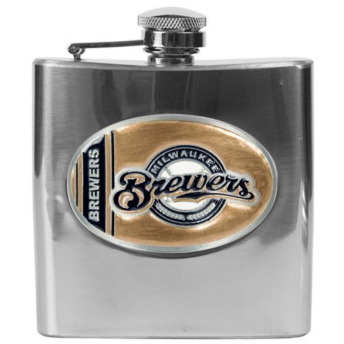 Milwaukee Brewers 6oz Stainless Steel Flask Handcrafted high-quality metal logo.High quality collectible design.Proudly displays hand-crafted metal emblem featuring the Team Logo.. Officially Licensed flask decorated in team colors. And at this moment get cheap price. View More