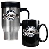 MLB Milwaukee Brewers Stainless Steel Travel Mug & Black Ceramic Mug Set - Primary Logo, One for the road and one for the home or office.Handcrafted high-quality metal logo.Both are decorated with a hand-crafted metal Team Logo.. You can drink coffee on the road as well as in your home or office with this Officially Licensed Stainless Steel Travel Mug and Ceramic Mug combo-set. And At this time get cheap price.Read More