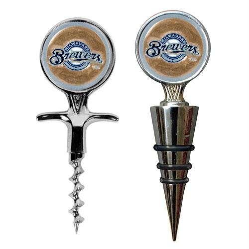 Get Discount Price For MLB Milwaukee Brewers Cork Screw and Wine Bottle Topper Set